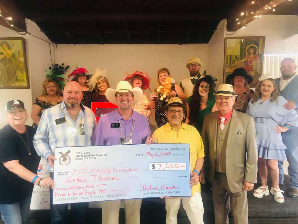 On May 6, Azusa Eagles #2810 held their annual Kentucky Derby Fundraiser, collecting $7,000 for the FOE Charity Foundation’s Spinal Cord Injury Fund, led by international Director Richard Harder.