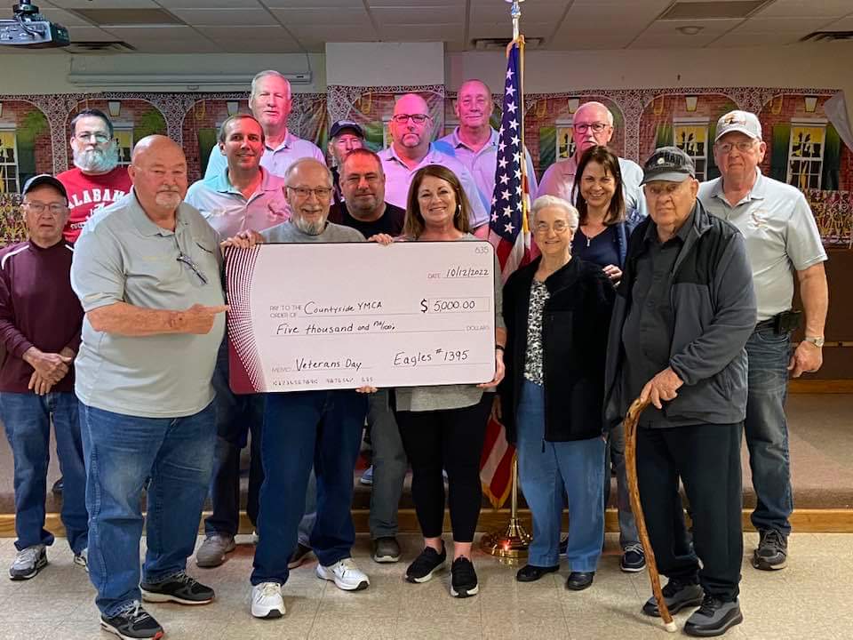 Miami Valley Eagles #1395 donated $5,000 to the Countryside YMCA for their Veterans Day Celebration last fall.