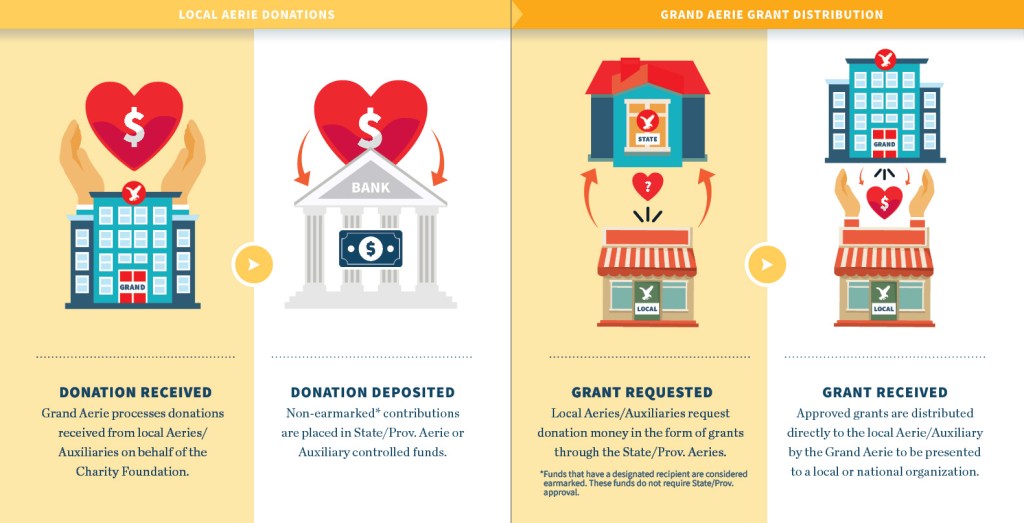 The Fraternal Order of Eagles Believes every penny donated to our Charity Foundation should benefit the organizations who need it most – that’s why we return 100% of all funds raised in the form of grants.